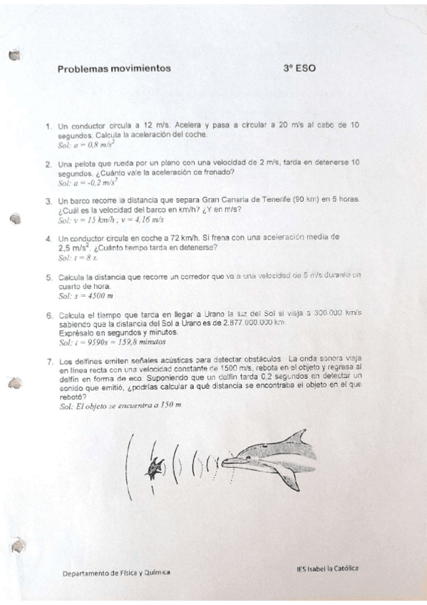 Problemas de movimientos de física y química con la solución de cada problema. Super útil para practicarlo y estudiarlo antes del examen