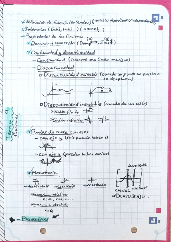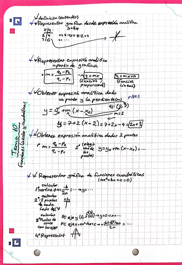 Resumen del tema de funciones lineales y cuadráticas de 3°ESO