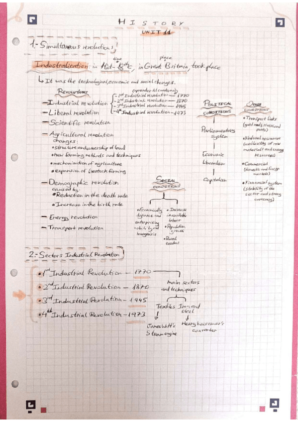 Resumen historia tema 11 en inglés. Revoluciones industriales. Geography and History 3°ESO