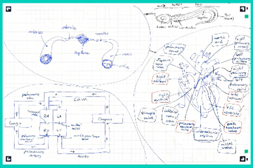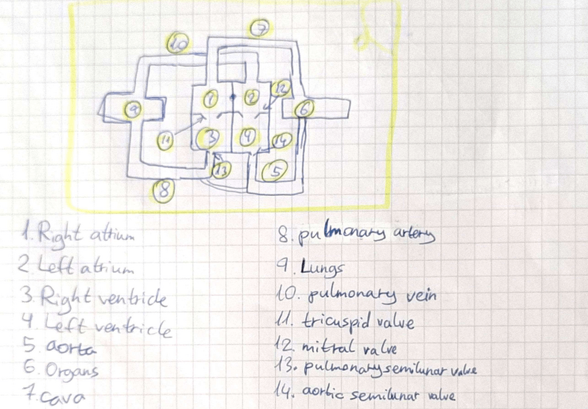 Dibujo de la circulación pulmonar y sus partes en inglés de 3°ESO
