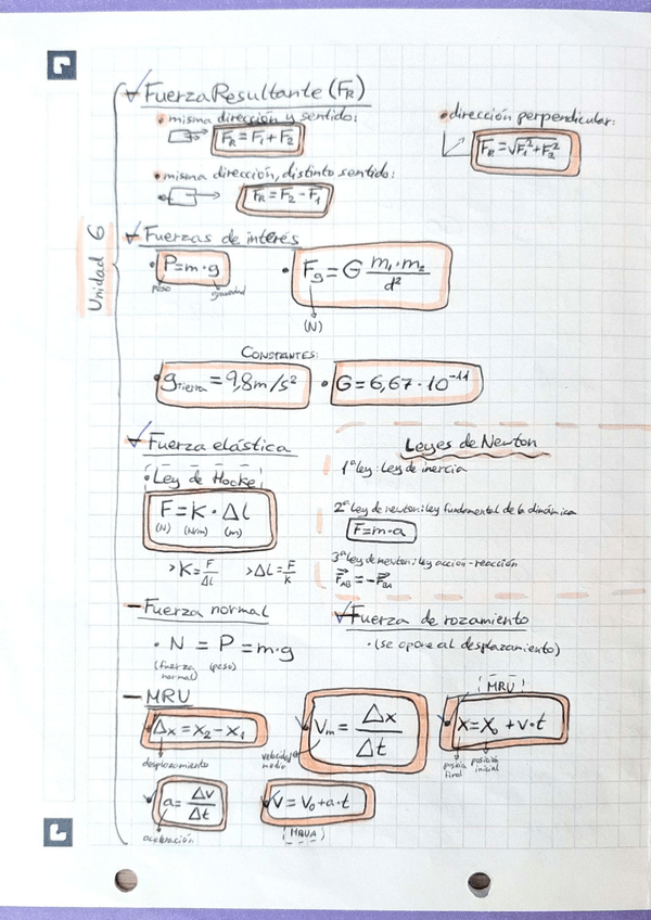Tema 6 resumen física y química fórmulas de MRU y de fuerzas 3°ESO