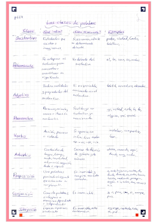 Resumen de las clases de palabras para repasarlas