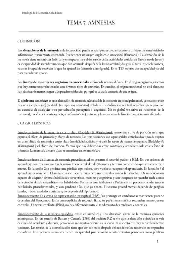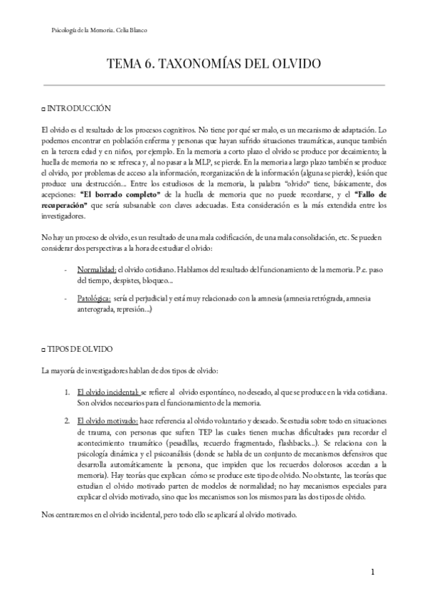 Apuntes - Psicología de la Memoria (J.M.López Frutos)
