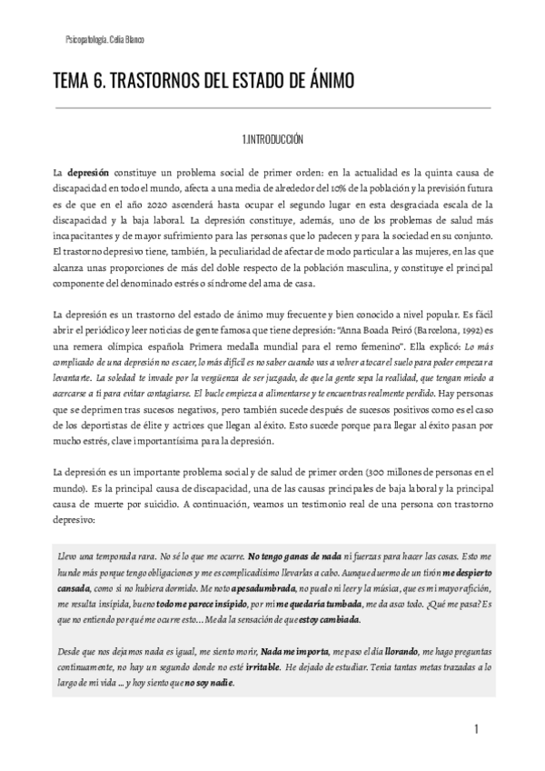 Bio: Soy estudiante de Psicología en la Universidad Autónoma de Madrid. Estoy muy comprometida con la carrera. Los apuntes realizados son una confluencia entre apuntes tomados en clase y libros, lecturas u otros documentos.