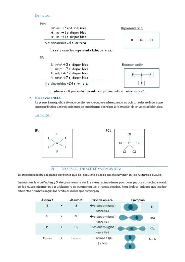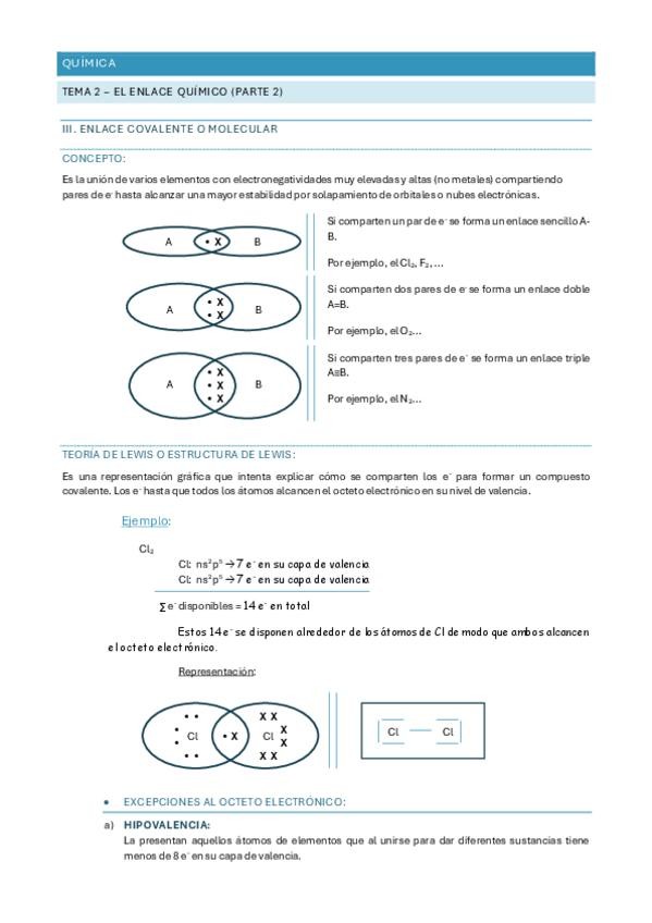 Resumen con ejemplos del tema 2 de química de 2do bach: el enlace químico (enlace covalente, enlace metálico, sustancias covalentes atómicas)
