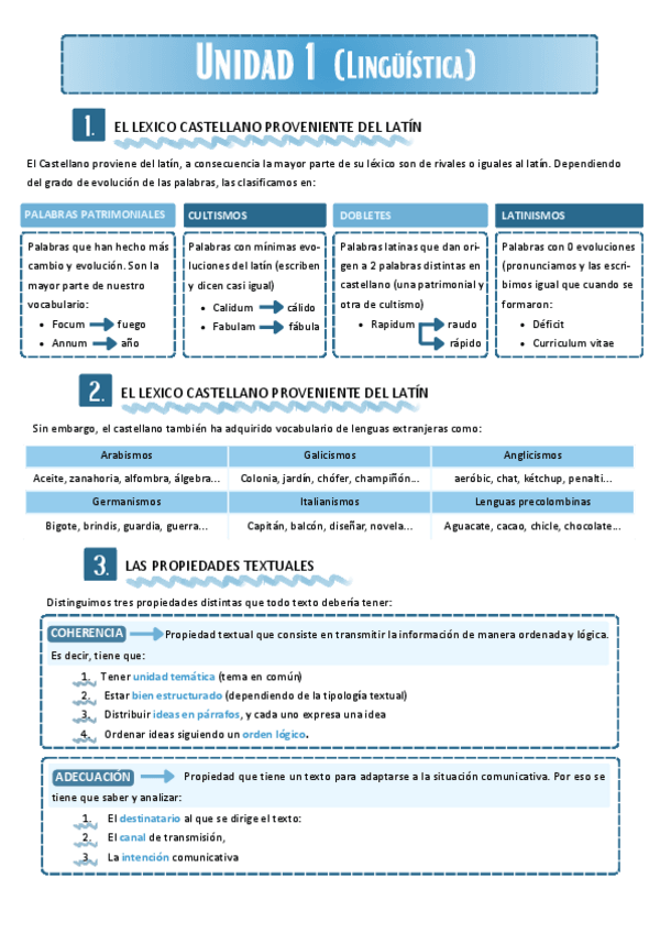Resumen de la gramática (categorías, sintagmas, funciones sintácticas y complementos) y lingüística (palabras de origen latino y propiedades textuales