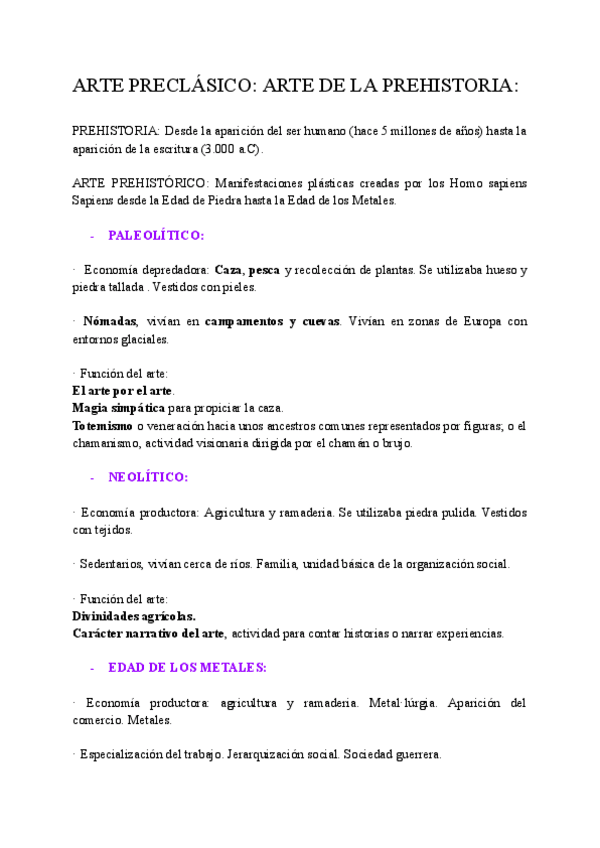 Arte de la prehistoria donde se incluye: Paleolítico, Neolítico y Edad de los Metales