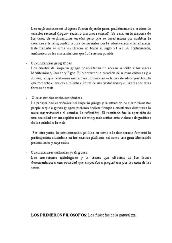 Se incluye: Paso del mito al logos, presocráticos, y sofistas y Sócrates