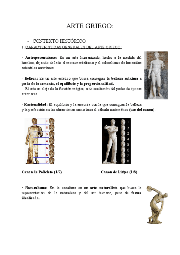 Todo el arte griego, incluye arquitectura y escultura y se incluyen comentarios de texto