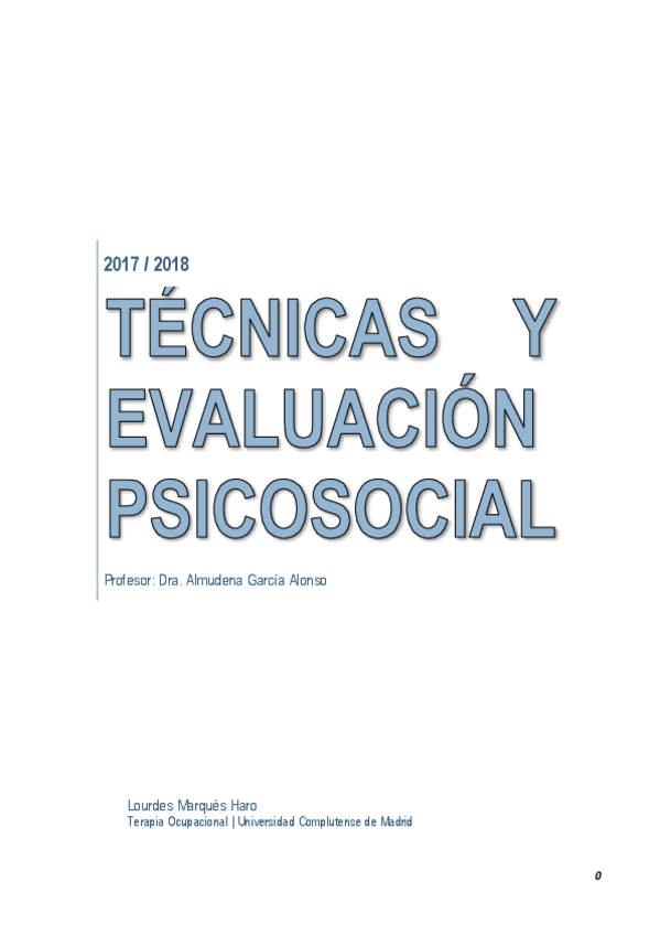 He publicado nuevos apuntes de 3º Técnicas de Evaluación Psicosocial en Terapia Ocupacional: Técnicas y evaluación psicosocial 17-18.pdf