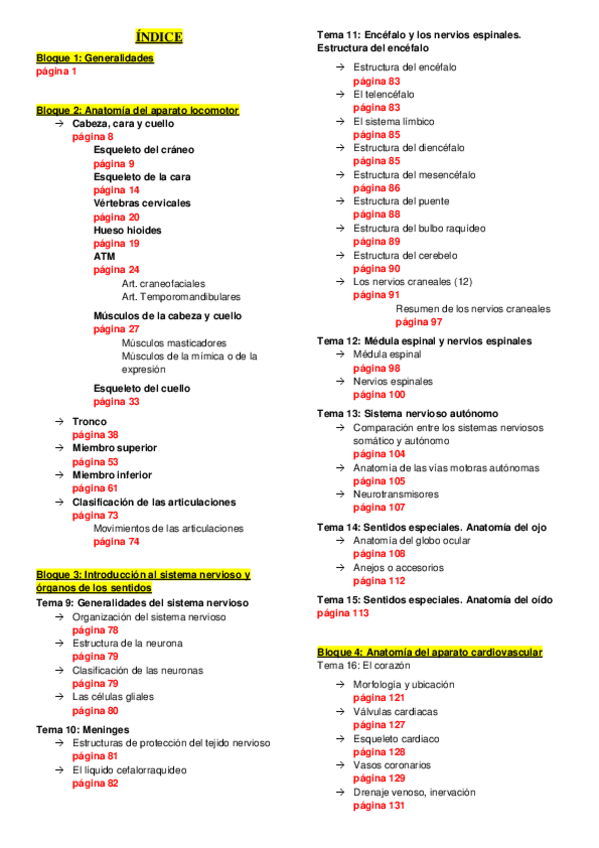 Anatomía Humana - Temario Completo