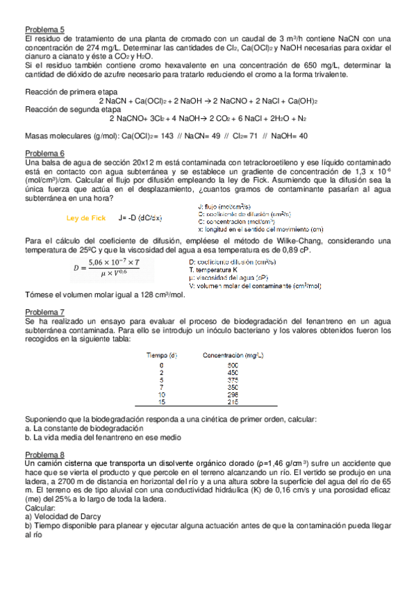 He publicado nuevos ejercicios de 4º Ingeniería del Medio Ambiente: Problemas-Agua.pdf