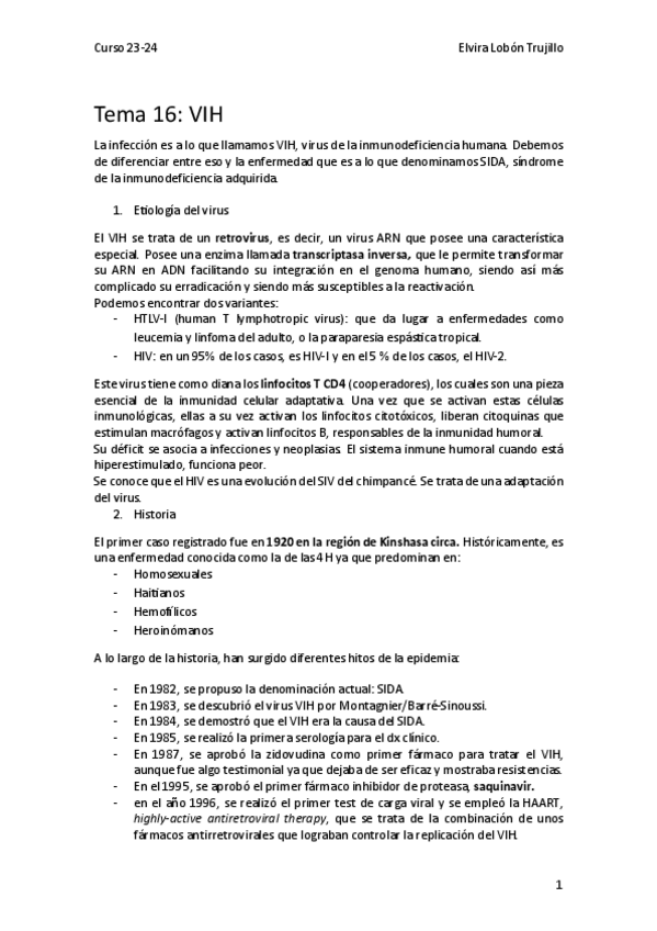He publicado nuevos apuntes de 3º PATOLOGIA INFECCIOSA, GERIATRIA Y URGENCIAS: Tema-16-VIH-23-24.pdf