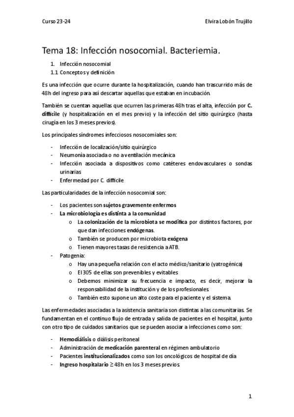 He publicado nuevos apuntes de 3º PATOLOGIA INFECCIOSA, GERIATRIA Y URGENCIAS: tema-18-infeccion-nosocomial-bacteriemia-23-24.pdf