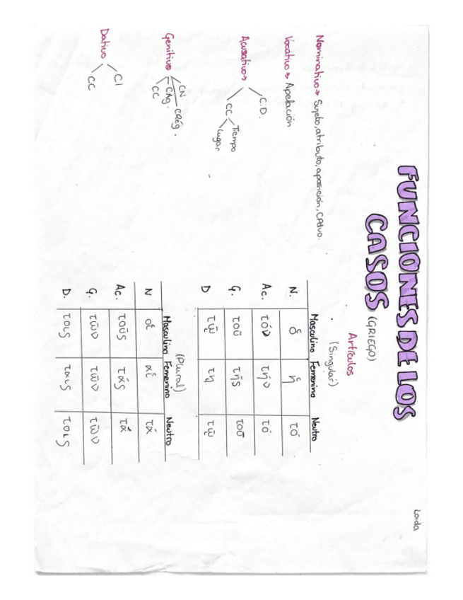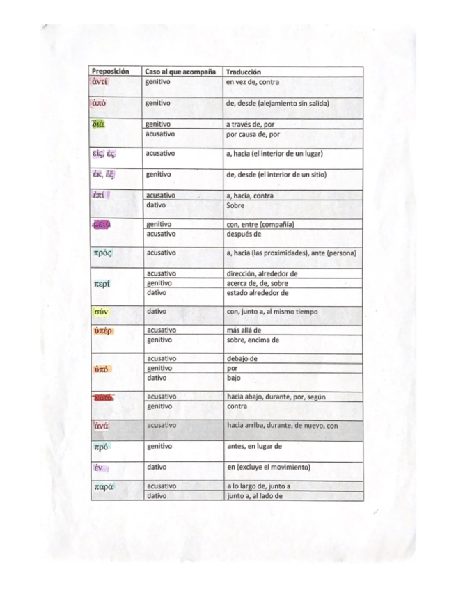 Gramática griega (preposiciones, aoristo, 3ª declinación y artículos); línea temporal de Grecia y funciones más complejas
