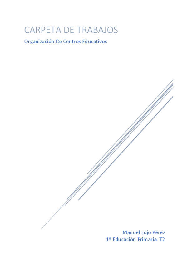 He publicado nuevos apuntes de 1º Organizacion de Centros Educativos: Carpeta trabajo OCE. Manuel Lojo Pérez. 1º Educación Primaria T2..pdf