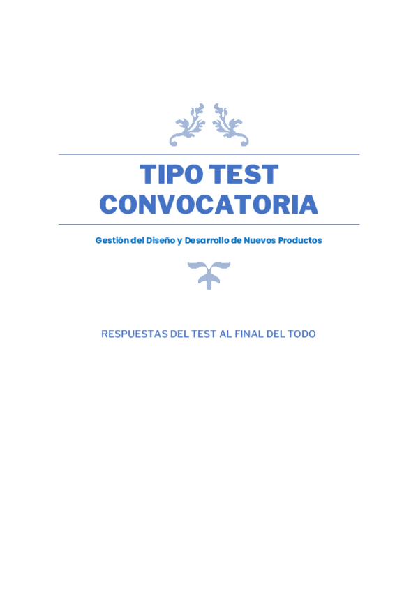 He publicado nuevos test de 4º Gestión del Diseño y Desarrollo de Nuevos Productos: Test Convocatoria Respuestas al final.pdf