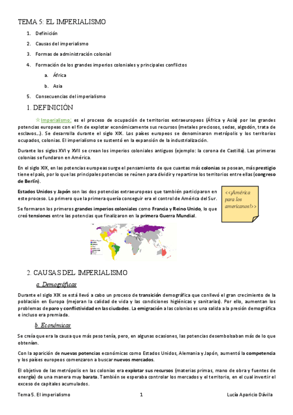 Apuntes de Historia del mundo contemporáneo para 1º de bachillerato. Bonitos y con fotos. A partir del tema 4.