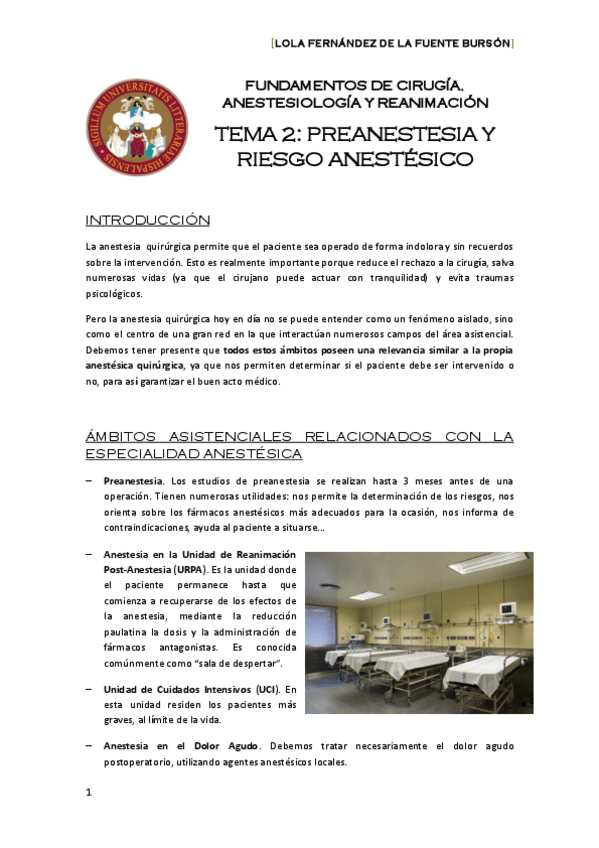 He publicado nuevos apuntes de 3º Fundamentos de Cirugía, Anestesiología y Reanimación: Tema 2 (FCAR-2) PREANESTESIA Y RIESGO ANESTÉSICO. Lola.pdf