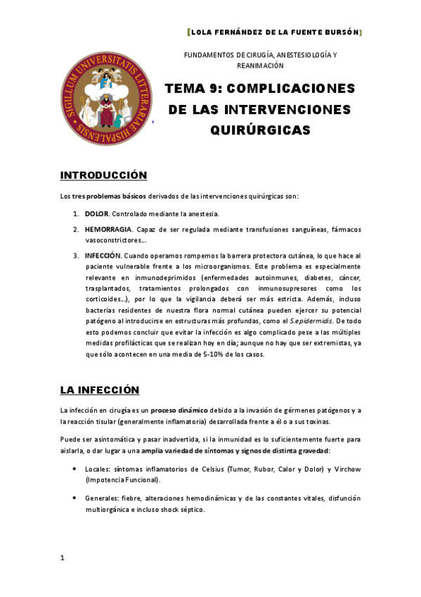 He publicado nuevos apuntes de 3º Fundamentos de Cirugía, Anestesiología y Reanimación: Tema 9 (FCAR) COMPLICACIONES DE LAS INTERVENCIONES QUIRÚRGICAS. Lola.pdf