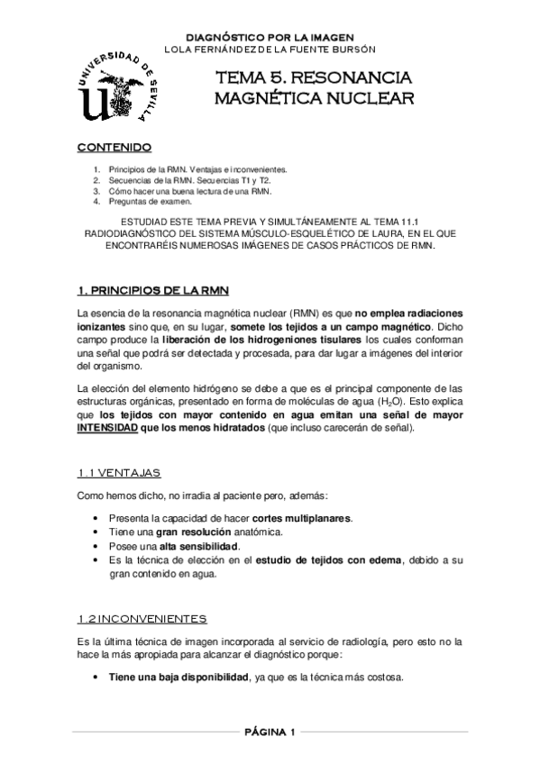 He publicado nuevos apuntes de 4º Diagnóstico Por Imagen: Tema 5. RESONANCIA MAGNÉTICA NUCLEAR (Dco) Lola.pdf