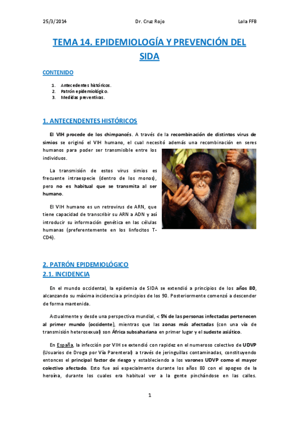 He publicado nuevos apuntes de 5º Medicina Preventiva y Salud Pública: Tema 14. EPIDEMIOLOGÍA Y PREVENCIÓN DEL SIDA. Preventiva. Lola FFB.pdf