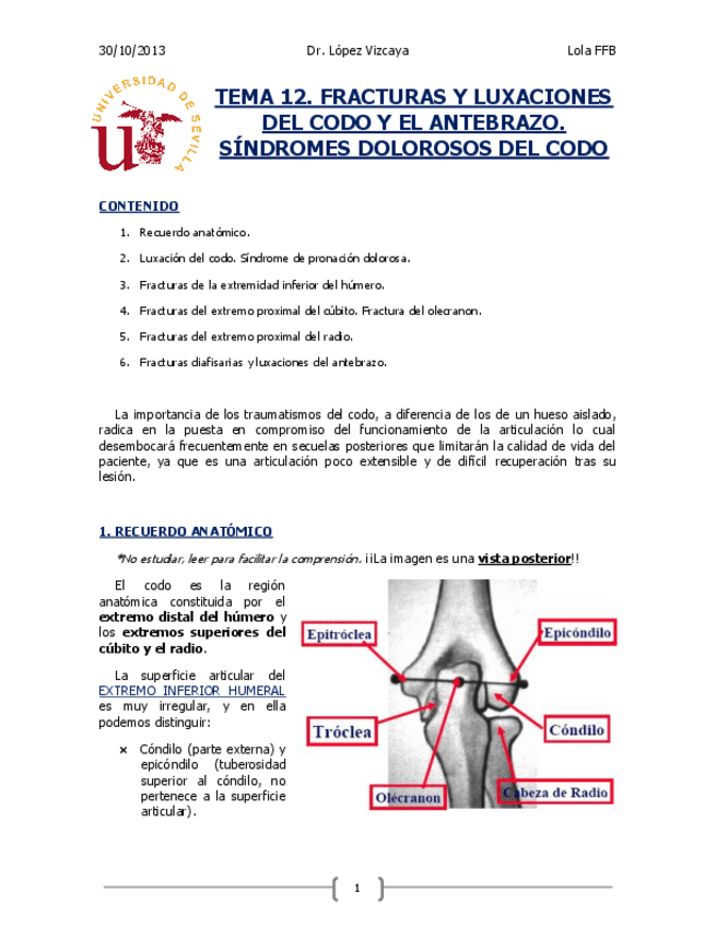 He publicado nuevos apuntes de 5º Patología Quirúrgica de Sistemas Endocrino y Mama. Traumatología y Ortopedia. Maxilofacial. Urología: Tema 12. FRACTURAS Y LUXACIONES DEL CODO Y EL ANTEBRAZO. Patología Quirúrgica II. Lola.pdf