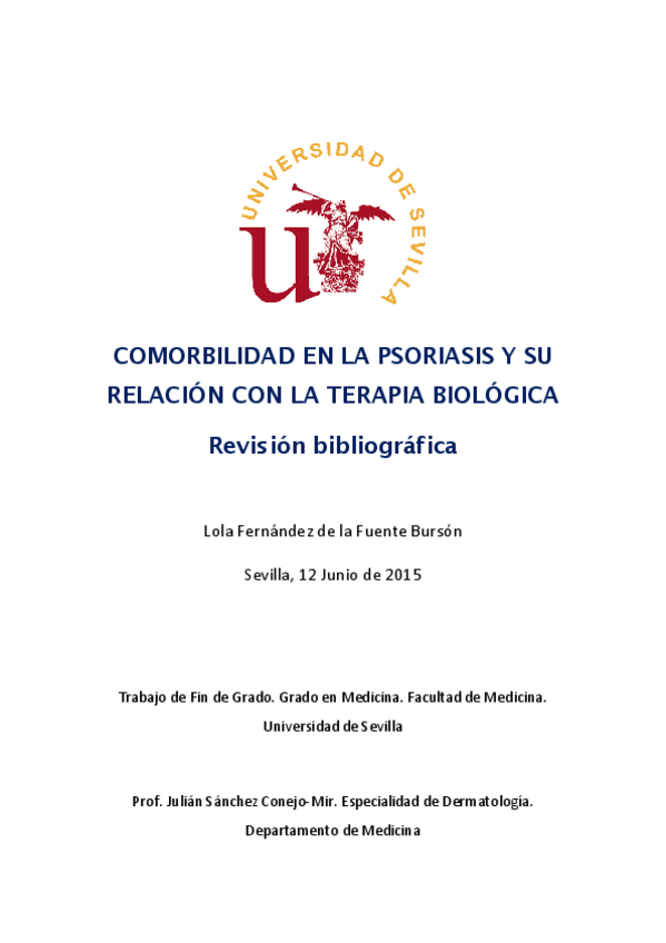 TFG de la primera promoción en medicina de la US con Bolonia, para que pueda servir de guía a las siguientes promociones. Obtuve un sobresaliente con el mismo.