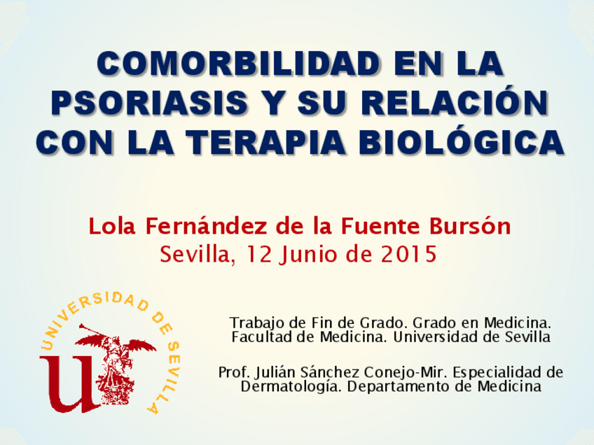 Os dejo una versión provisional del PPT que hice para la defensa de mi TFG (primera promoción de medicina de la US con Bolonia), para que pueda servir de guía para las siguientes promociones. Como veréis es esquemático, gráfico y poco recargado. Obtuve un