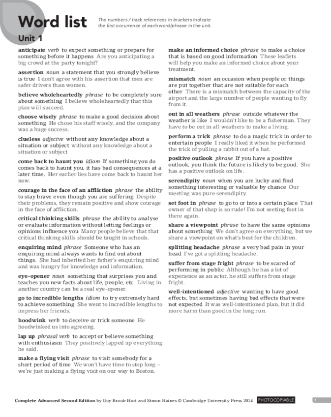 He publicado nuevos apuntes de 2º Inglés II: completeadvancedwordlists.pdf