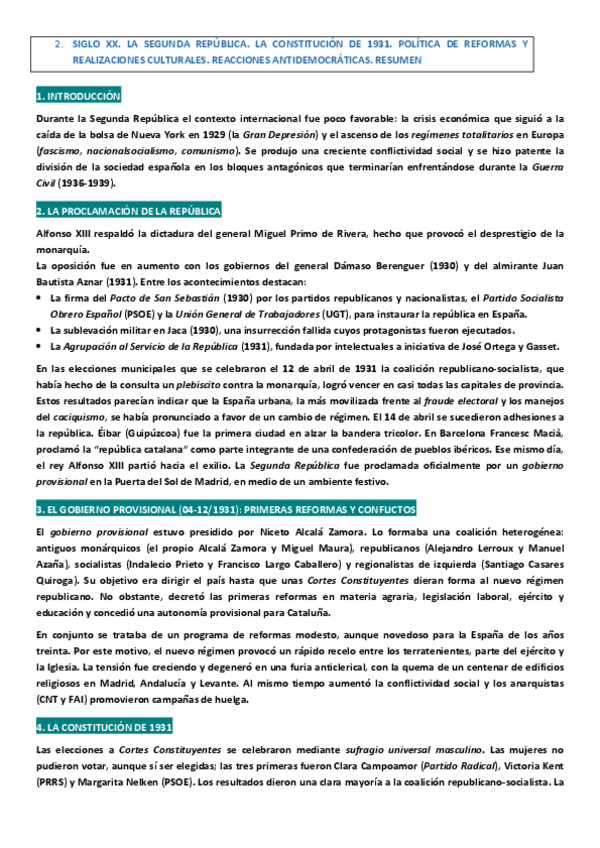 He publicado nuevos apuntes de 2º Historia de España: Resúmenes selectividad S.XX