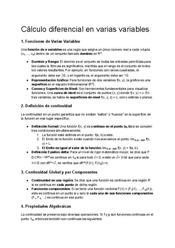 Apuntes de cálculo diferencial en varias variables.