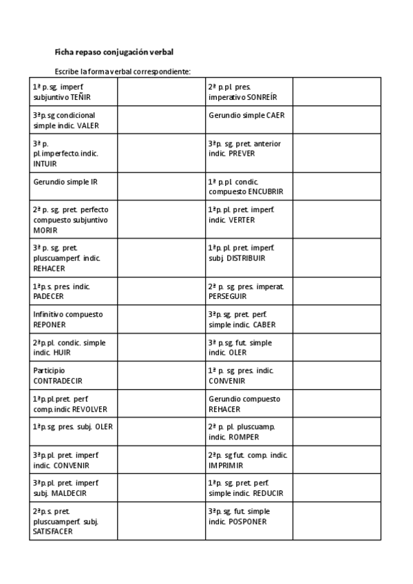 He publicado nuevos ejercicios de 1º Lengua Castellana y Literatura I: Ficha-repaso-conjugacion-verbal.pdf
