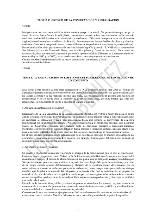 He publicado nuevos apuntes de 4º Teoría de la Conservación y Restauración: TEMA 1 RESTAURACIÓN 2018.docx