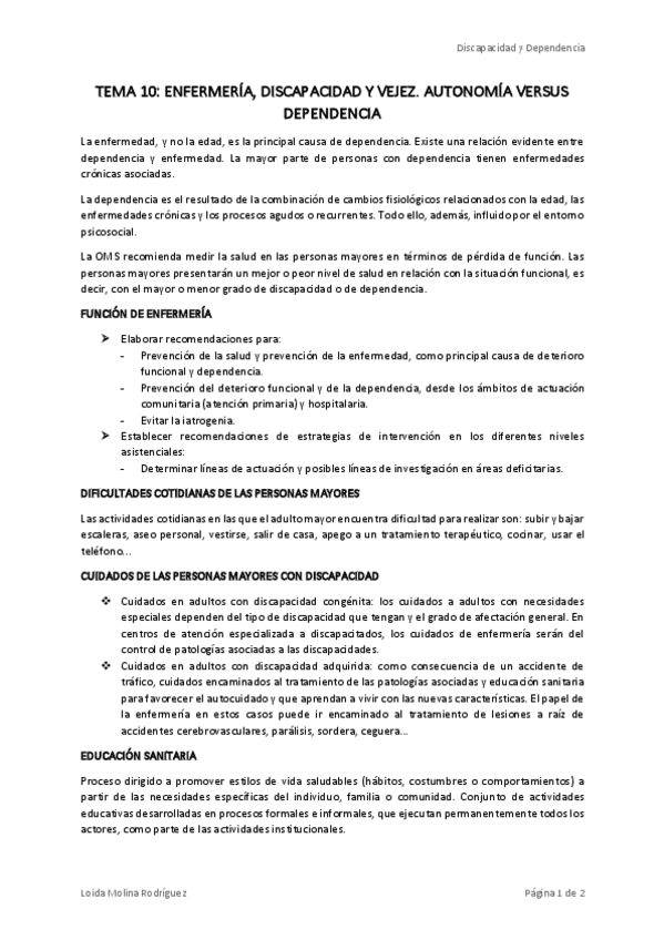 He publicado nuevos apuntes de 2º Enfermería, Discapacidad y Dependencia: DISCAPACIDAD-TEMA-10.pdf
