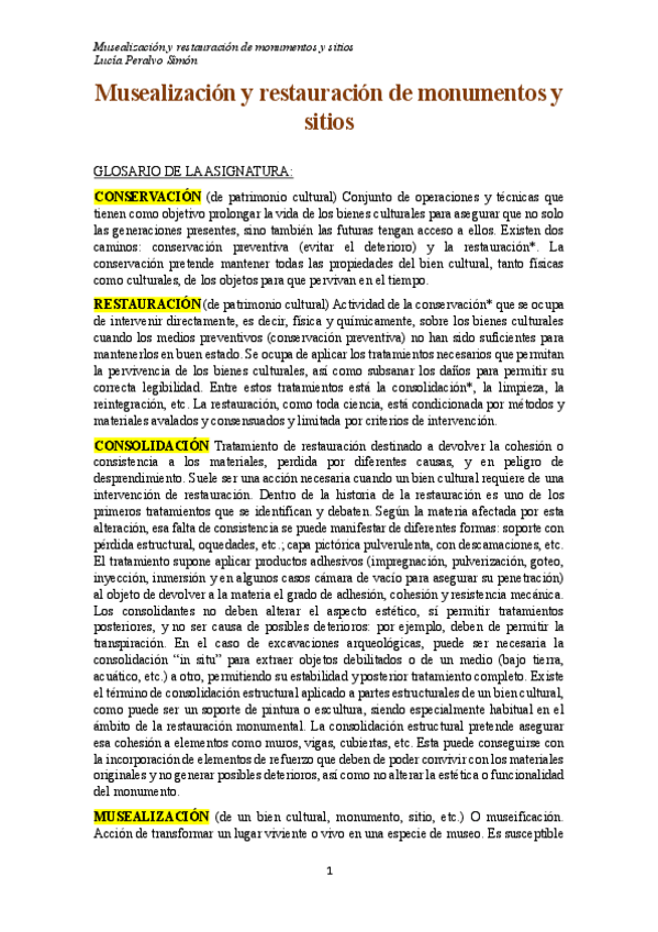He publicado nuevos apuntes de 4º MUSEALIZACIÓN Y RESTAURACIÓN DE SITIOS Y MONUMENTOS: Apuntes-musealizacion.pdf
