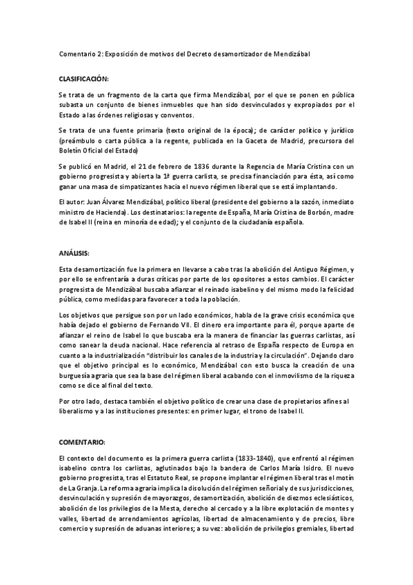 Comentarios de texto Siglo XIX