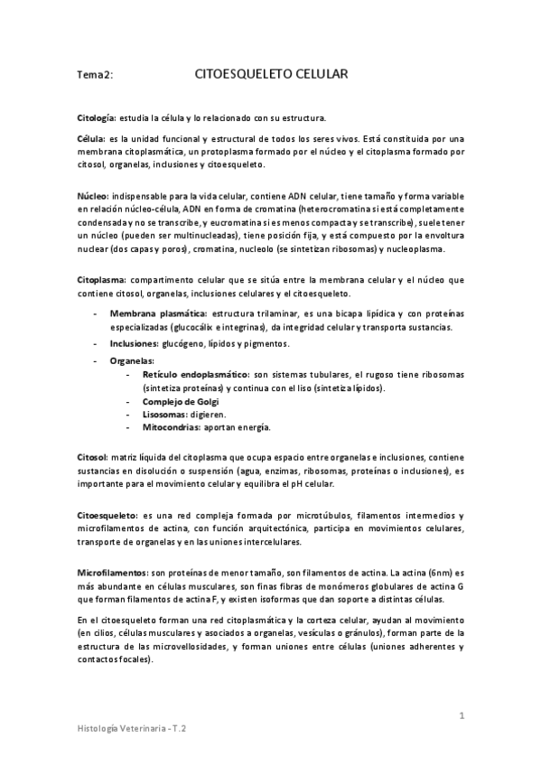 He publicado nuevos apuntes de 1º Histología Veterinaria: Primer parcial