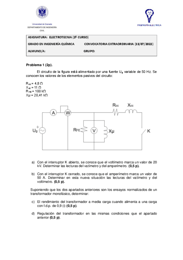 He publicado nuevos examenes de 2º Electrotecnia: Examen extraordinaria 2022