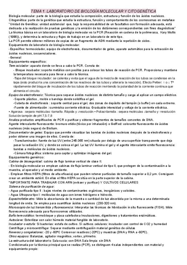 Apuntes tema 1 y 2: LABORATORIO DE BIOLOGÍA MOLECULAR Y CITOGENÉTICA // ÁCIDOS NUCLEICOS Y ENZIMAS ASOCIADAS de biologia molecular y citogenética de laboratorio clínico y biomedico