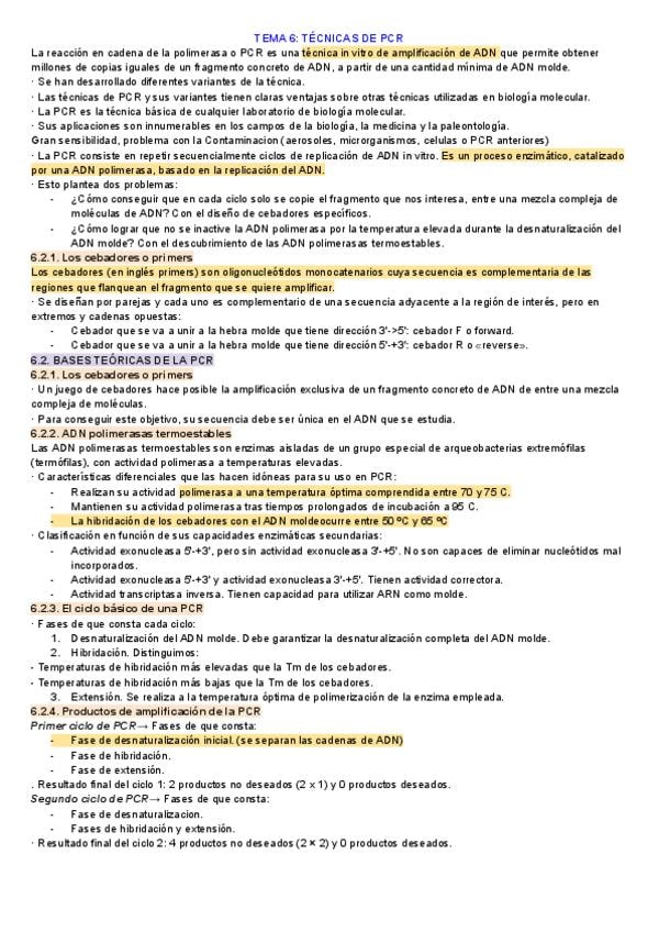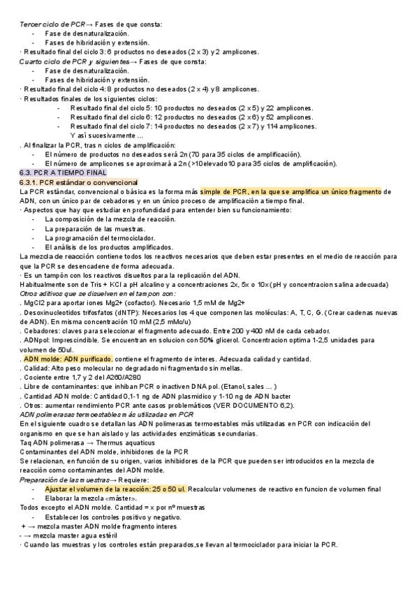Apuntes tema 6: TÉCNICAS DE PCR de biologia molecular y citogenética de laboratorio clínico y biomedico