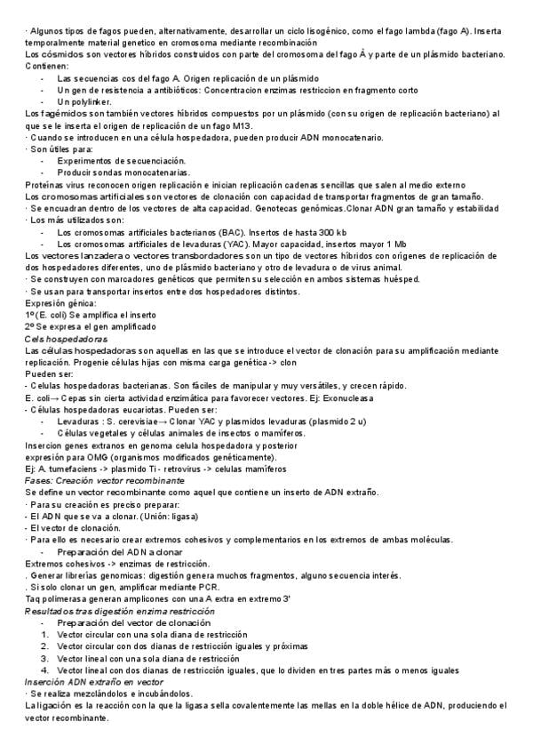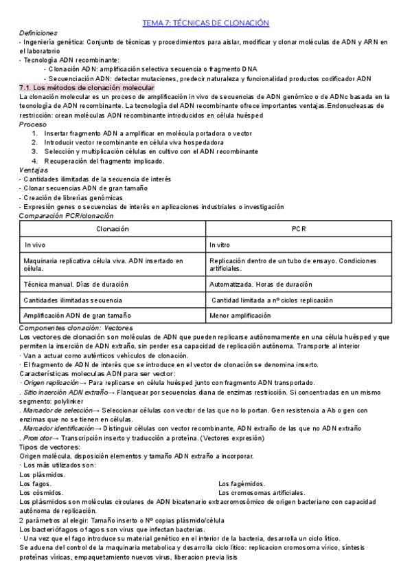 Apuntes tema 7: TÉCNICAS DE CLONACIÓN de biologia molecular y citogenética de laboratorio clínico y biomedico
