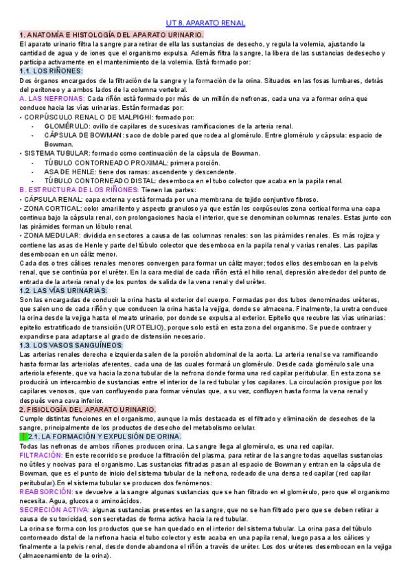 Apuntes tema 8 (APARATO RENAL) fisiopatología general de laboratorio clínico y biomedico