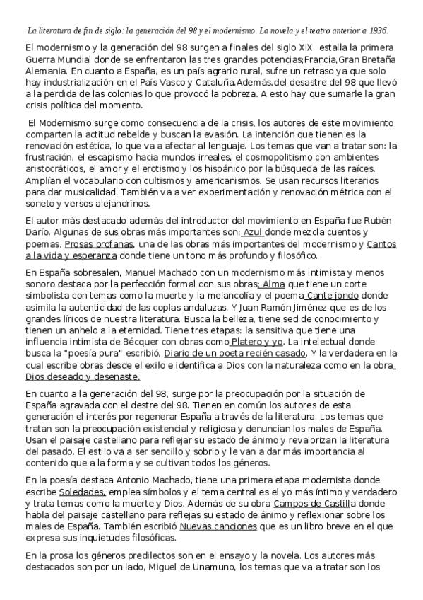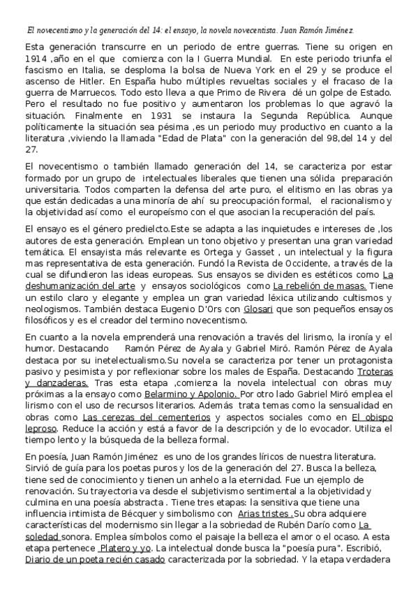 Apuntes literaturaPAU : SXX Novecentismo y G14 y Juan Ramón Jimenez