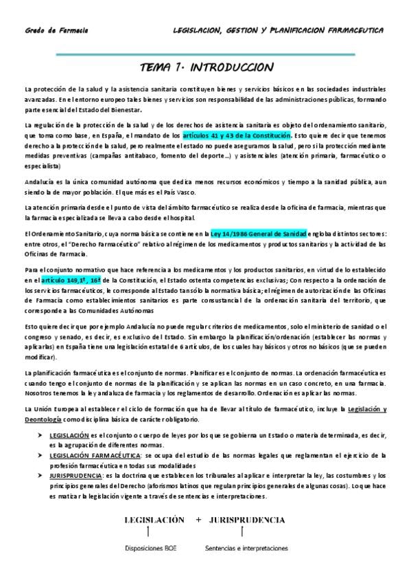 He publicado nuevos apuntes de 4º Legislacion, Gestion y Planificacion Farmaceutica : LEGISLACION