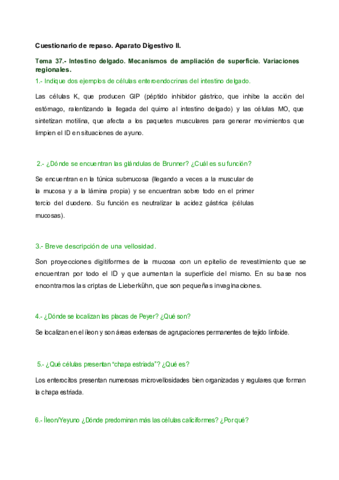 Cuestionarios de repaso sistema disgestivo