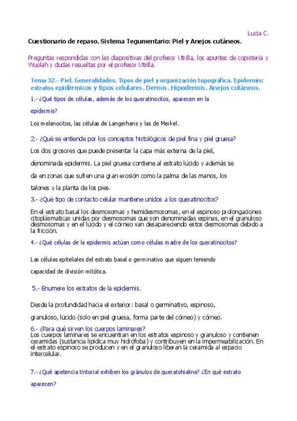 He publicado nuevos apuntes de 1º Histología Humana: Cuestionario de repaso Piel 2018.pdf