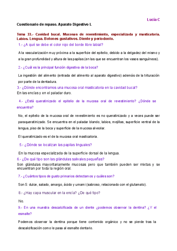 Banco de PREGUNTAS CONTESTADAS Y COMPLETADAS: profesora Carmen Montes (miembro superior y miembro inferior)