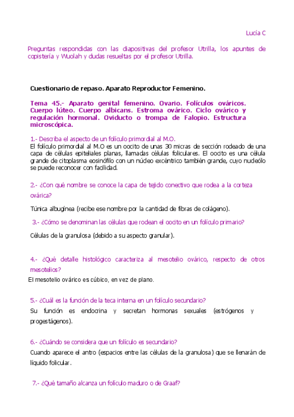 He publicado nuevos apuntes de 1º Histología Humana: Cuestionario de repaso Ap Rep Femenino.pdf