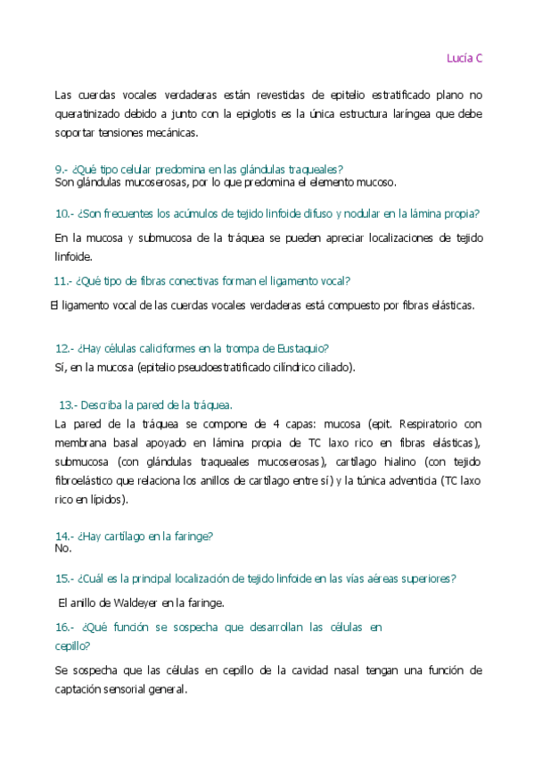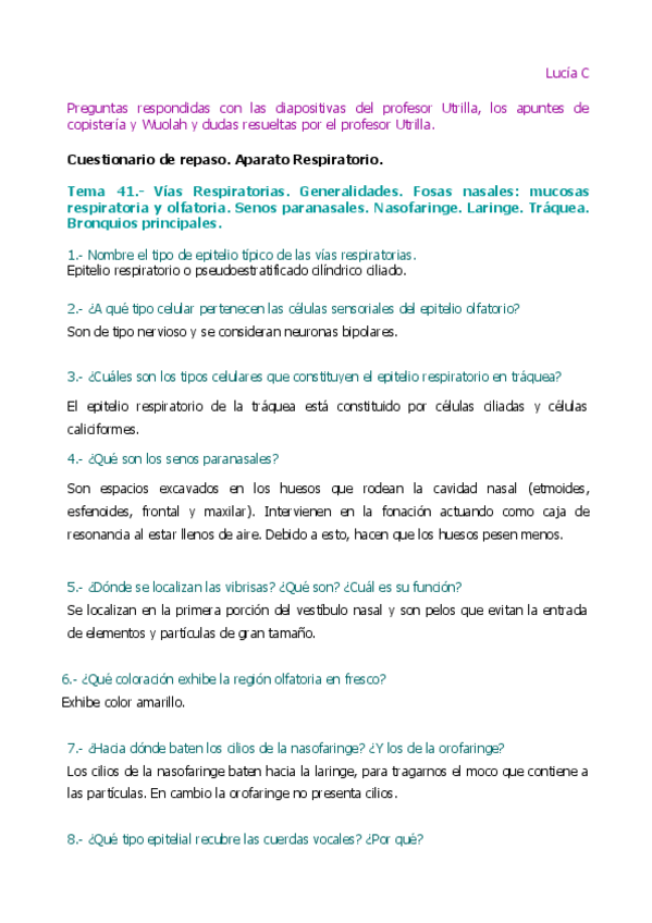 He publicado nuevos apuntes de 1º Histología Humana: Cuestionario de repaso Aparato respiratorio 2018.pdf